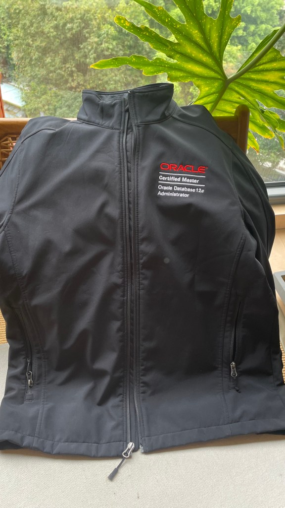 A decade later, I upgraded my Oracle certification from 10g to 12c. Upon passing the 12c OCM certification, I was given a jacket as the commemorative gift.