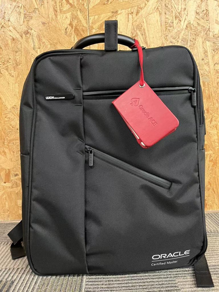 It’s worth noting that the luggage tag adorning the backpack is not for OCMs but is exclusive to Oracle ACEs.