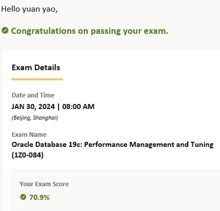 In my daily work, I can be considered an Oracle and MySQL database optimization expert. Recently, I embarked on the journey to validate my expertise by pursuing Oracle Certified Professional Oracle Database 19c: Performance Management and Tuning Certification (exam code is 1z0-084). Although the process was not smooth, I eventually passed the exam. Here, I’d like to share the process with you all.