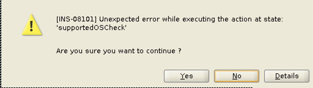 [WARNING] [INS-08101] Unexpected error while executing the action at state: 'supportedOSCheck'