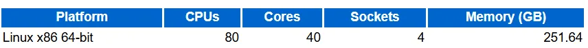 In this example, the motherboard contains four sockets. Each socket accommodates ten cores, amounting to a total of 40 cores. With hyper-threading, each core appears as two logical CPUs, resulting in 80 CPUs.
