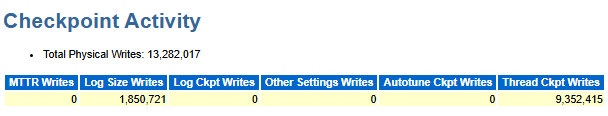 Another way to judge redo logfile sizing is by examining Checkpoint Activity in the Oracle AWR report. The distribution of checkpoint writes reveals whether Oracle is checkpointing smoothly or struggling due to undersized logs.