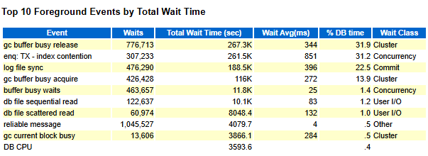 | gc buffer busy acquire | 426,428 | 116K | 272 | 13.9 | Cluster |