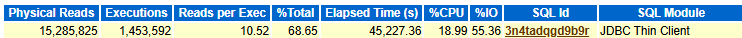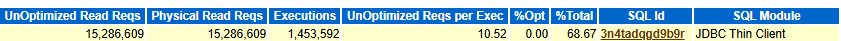 If Smart Flash Cache is not enabled in the database, all read requests are unoptimized. In this case, the values of “UnOptimized Read Reqs” and “Physical Read Reqs” are identical, and the “%Opt” is zero. Consequently, the “SQL ordered by Physical Reads (UnOptimized)” list effectively mirrors “SQL ordered by Reads” list, both showing the top SQL statements by physical reads. Even so, this list remains useful for identifying the SQLs responsible for the highest I/O load.