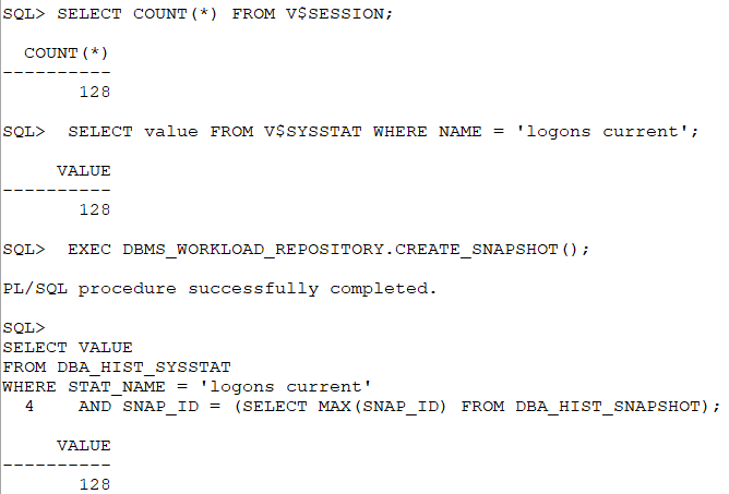 EXEC DBMS_WORKLOAD_REPOSITORY.CREATE_SNAPSHOT();