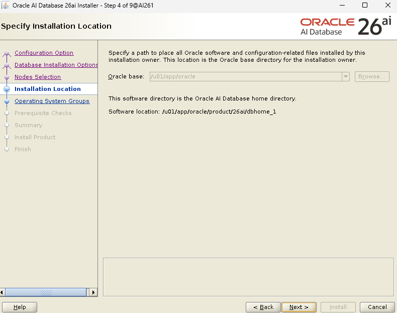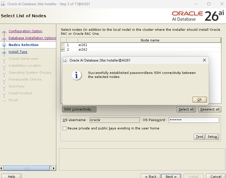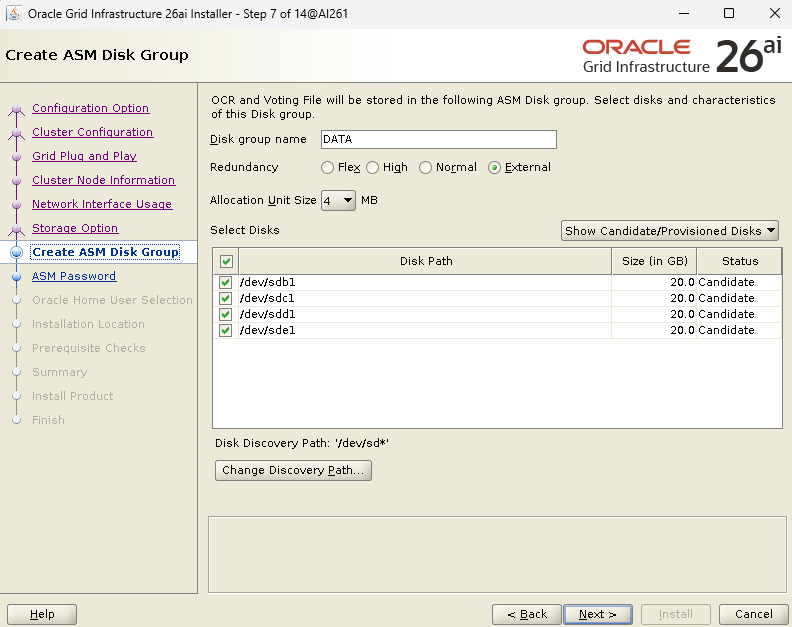 mkdir -p /u01/app/26ai/gridmkdir -p /u01/app/gridmkdir -p /u01/app/oracle/product/26ai/dbhome_1chown grid:oinstall /u01 -Rchown oracle:oinstall /u01/app/oracle -R