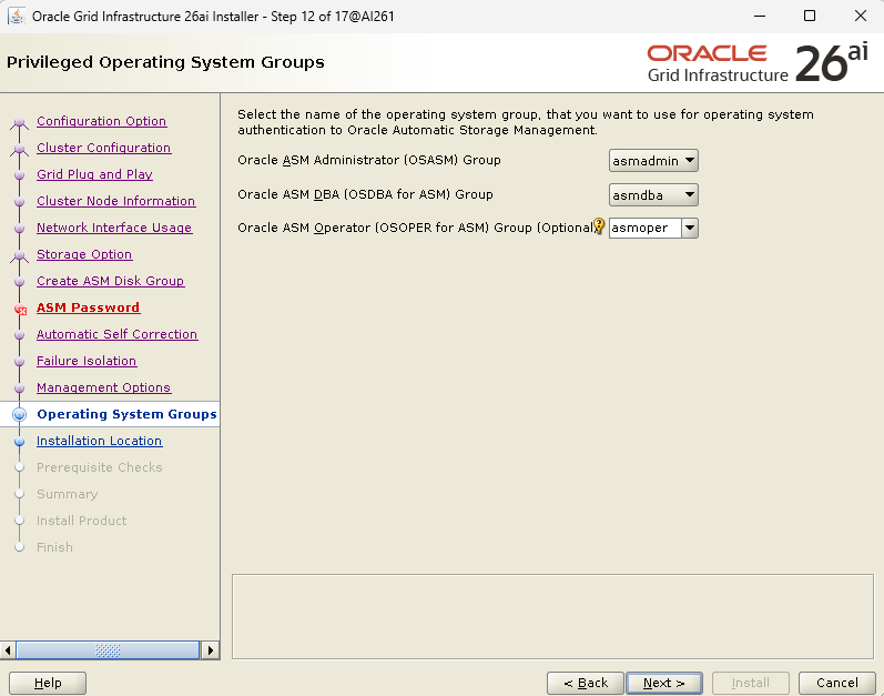 In oracle 26ai, the group has been changed from asmadmin to asmdba.
