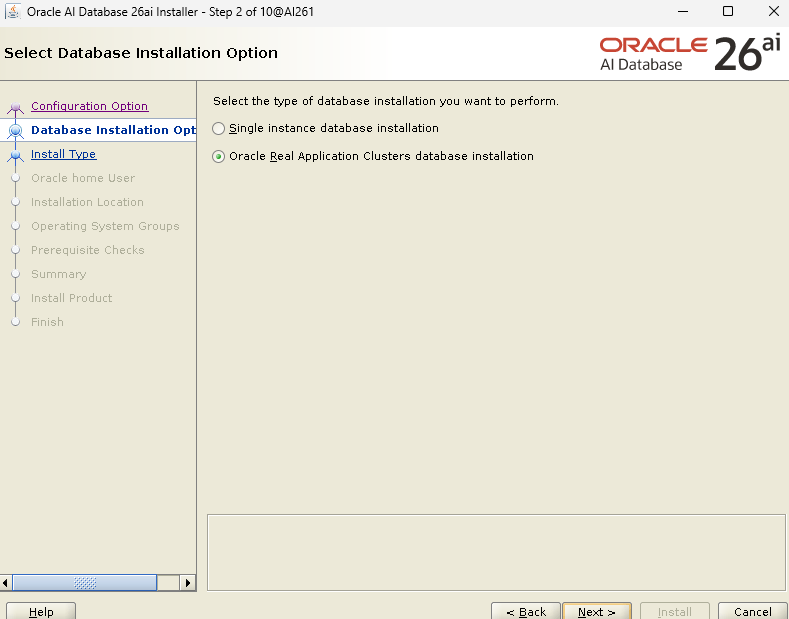 [oracle@AI261 ~]$ cd $ORACLE_HOME[oracle@AI261 dbhome_1]$ unzip -q ~/LINUX.X64_2326100_db_home.zip[oracle@AI261 dbhome_1]$ ./runInstaller