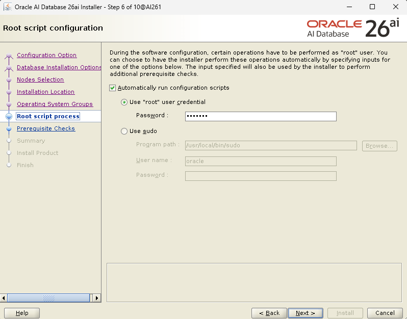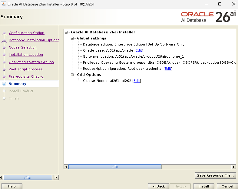 export ORACLE_BASE=/u01/app/oracleexport ORACLE_HOME=/u01/app/oracle/product/26ai/dbhome_1export ORACLE_SID=AI261export PATH=$ORACLE_HOME/bin:$PATH