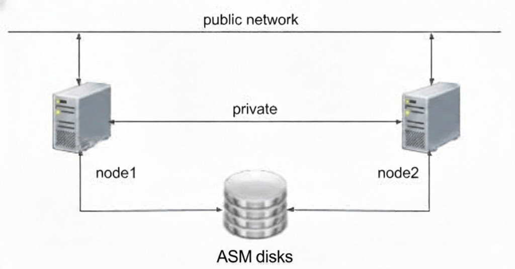 A conceptual architecture diagram of Oracle RAC is as follows: